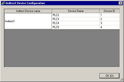 Displays the [Indirect Device Configuration] dialog box. Use this dialog box to check the association between indirect devices, devices/PLCs, and device IDs.