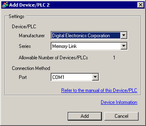 Adds the device/PLC settings. Use this setting when one display is communicating with multiple devices/PLCs.