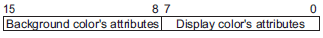 As shown below, display color code is stored in bits 0 to 7, and background color code is stored in bits 8 to 15.
