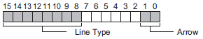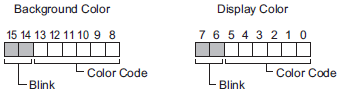 You can set the display color, background color, and blink settings. As shown below, display color data is stored in bits 0 to 7, and background color data is stored in bits 8 to 15.