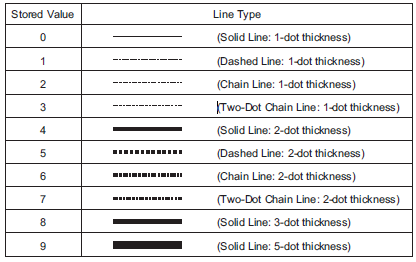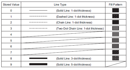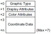 The display attributes, such as Line Type and Pattern, differ depending on each graphic. When drawing a dot, the display attributes (+1) data is ignored.