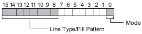 As shown below, display color code is stored in bits 0 to 5, and background color code is stored in bits 8 to 13. For information on color codes, refer to the 256-Color Code Table.