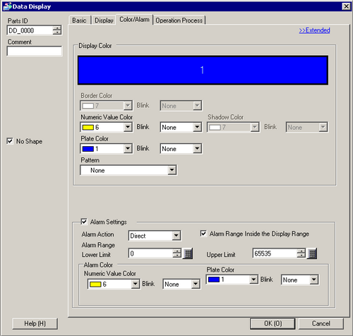 Set the font and/or color in the [Color/Alarm] and [Display] tabs as necessary and click [OK].