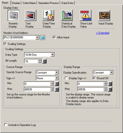 In [Monitor Word Address], set up the address to store the displayed numeric value.