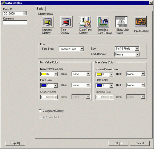 Characters of the image font used in Data Display [Show Limit Value] will be automatically registered. You can check registered content in the [Image Font] area's [Characters Used] setting.