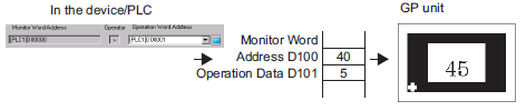 Example: When Operation Data Specification is [Address], the Indirect Area Specification is [Area After Display Address], and the Operator is [+].