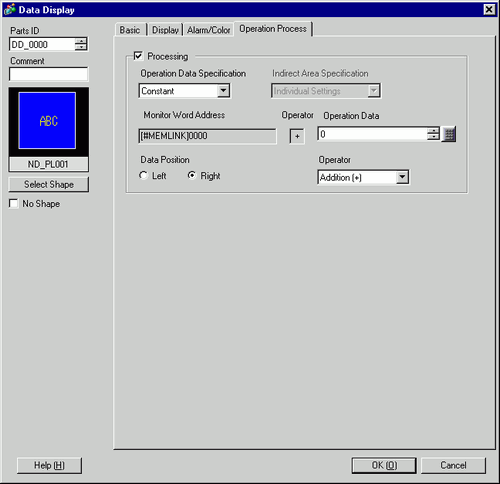 If the [Operation Data Specification] is set to [Constant], enter the operation data here. Each [Data Type] on the [Basic] tab has a different size range. If [Address] is set, specify the address where the operation data will be stored.