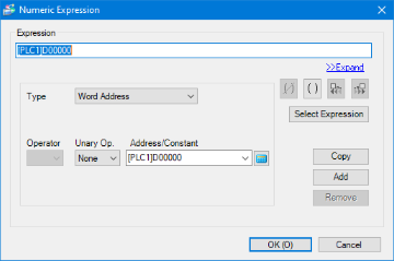 While the [Bit Address] is ON, executes the set expression. While the [Bit Address] is OFF, the expression is not executed and displays the value of the [Monitor Word Address] specified in the [Basic] tab.