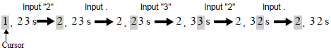 *5 Because the cursor does not move to a decimal position until a decimal point is input, the inputs ("1" and "2") are ignored.