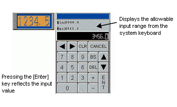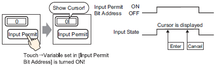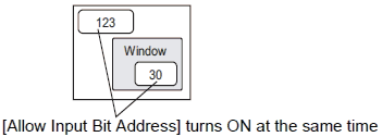 If the [Allow Input Bit Address] of Data Displays placed on the Base Screen and Window Screen turn ON at the same time, the Base Screen will have a higher priority for the input state than the Window Screen. When placing Data Displays on both the Base and Window screens, make sure to set a different [Allow Input Bit Address] for each.