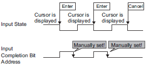 If more than one [Allow Input Bit Address] is turned ON at the same time, the Data Displays will enter the input state according to their [Input Order] settings. If the [Input Order] settings are the same, the input state order will be determined by the order the Data Displays were placed.