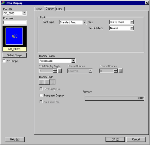 When the Total Display Digits is 5, and the Number of Decimal Places is 2, it will appear as follows: