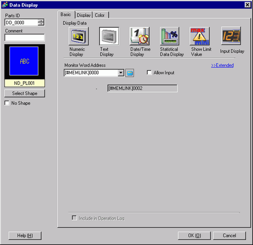 The Text Display displays text beginning with the word address defined here, for the number of consecutive addresses defined by the [Display Characters] in the [Display] tab.
