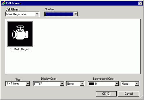 Select [Mark Registration] from [Call Object] and select the mark number registered in [Number]. (For example, 1)