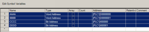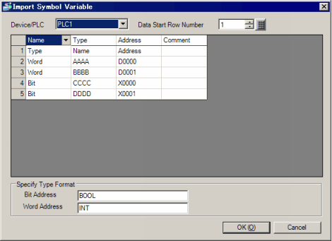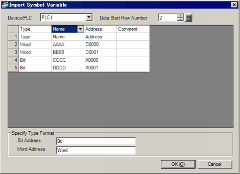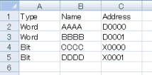 In [Bit Address] and [Word Address], enter text to match the [Type] column.