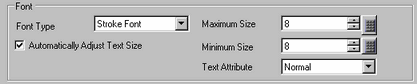 If you select [Stroke Font] when [Text Table] is used, the [Automatically Adjust Text Size] option appears. By selecting this option, the font size adjusts automatically within the set range to fit the text in the part.