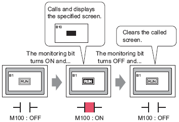 You can call and display pictures from other screens depending on the state of the specified bit address.