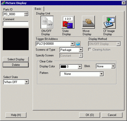 Select When ON or When OFF, click [Select Display], and specify a picture to display.