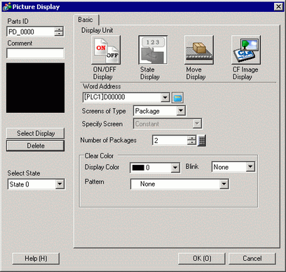 Select the state, from 0 to 15 (max), click [Select Display], and specify a screen picture to display.