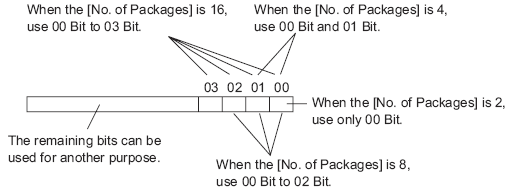 Package pictures change in response to the state changes of sequential bits starting from the 00 bit in the specified word address. In response to the [Number of Packages], bits are automatically assigned from the specified word address 00 bit.