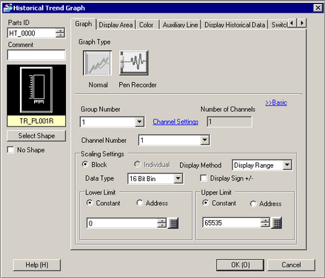 In the [Graph] tab, click [Extended] from [Scaling Settings] and set [Display Method] to [Display Range].