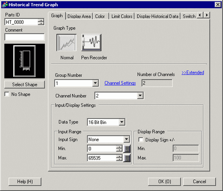 Configure the Channel No. for the graph you want to show/hide. Click the [Display Area] tab and select "2" from [Channel No].