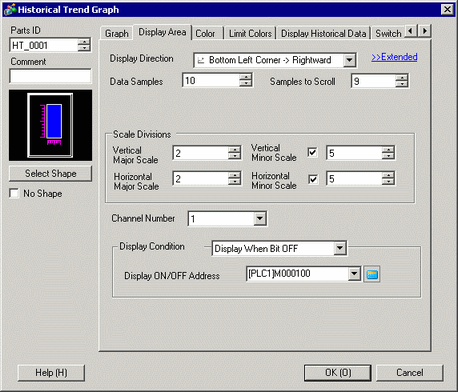 In [Display ON/OFF Address], select the address (for example, M100) for changing the show/hide status of the graph, and click [OK].