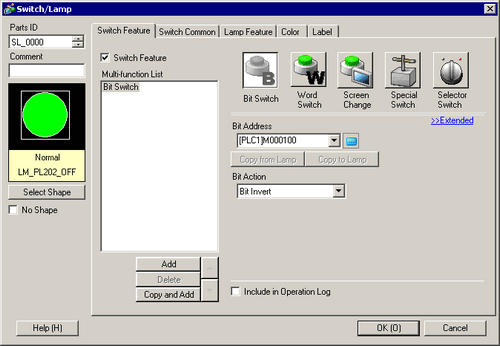 On the [Parts (P)] menu, point to [Switch Lamp], and select [Bit Switch (B)], or click