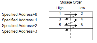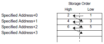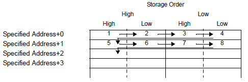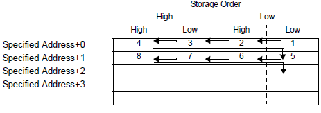 Regardless of the storage order setting of Text Data Mode, the storage order is fixed to L/H (little endian).