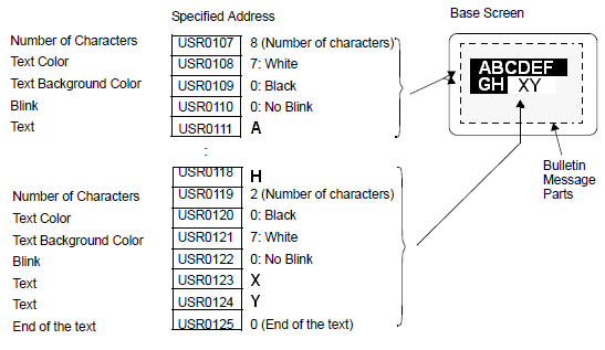 For example, Bulletin Message Parts are set on the base screen and the specified address is USR0100