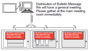 The Bulletin Message sent from the upper level can be displayed on the screens of multiple display units.