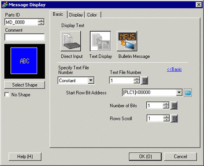 As needed, set the Message Display color and text color on the [Color] tab, and click [OK]. The Message Display settings are complete.
