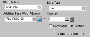 In the [Word Action] drop-down list, select [Add Data]. Set an address value in [Addition Base Word Address].