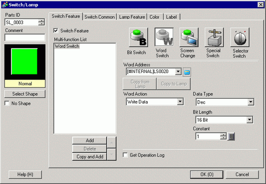 In the [Word Address] field, set the address (D100) where you want to write data when you touch the switch.