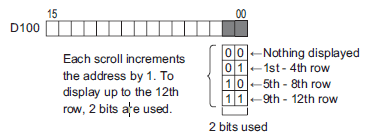 The number of bits to use depends on [Rows Scroll]. When scrolling four rows at a time, you need to scroll three times at the maximum to display 12 rows. 2 bits are required to store "3".