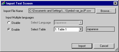 Select when importing text data for text screen using [Input Multiple Languages].