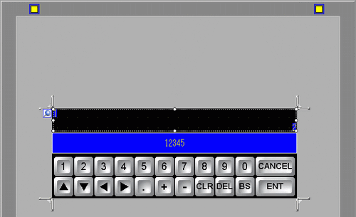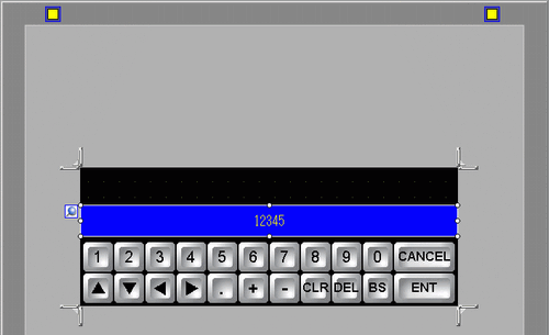 Place a part for Input display on the customized keypad. From the [Parts (P)] menu, point to [Data Display (D)] and select [Input Display (I)] to place it on the screen.