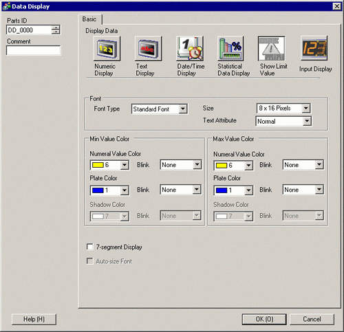 As required, set the Data Display color and text on the [Color/Alarm] and [Display] tabs, and click [OK].
