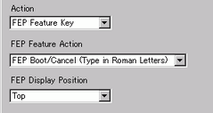 You can set this up when the [FEP Feature Action] is either [FEP Boot/Cancel (Type in Roman Letters)] or [FEP Boot/Cancel (Type in Hiragana)].