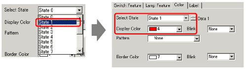Click the [Color] tab. In the [Select State] list, select [State 0] and define its [Display Color].