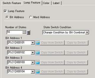 Set the [Number of States] and [State Switch Condition]. Setting the [Number of States] to 3 or more allows you to set [State Switch Condition]. (For example, [Number of States] 16, [State Switch Condition] Change state by bit combination)