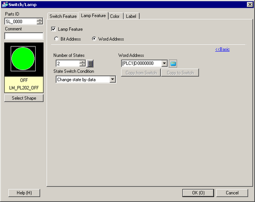 The lamp shape changes according to the word address value. You can set 1 to 256 ranges for changes. The same state (shape and/or color settings) can be specified for multiple ranges.