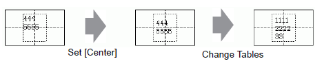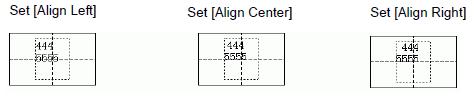 When multiple rows are set to the Text Table, the row with the largest number of characters (in the following example, the second row, "5555") is fixed and the other rows can be aligned to it with [Align Left], [Align Center], or [Align Right].