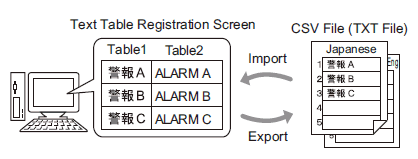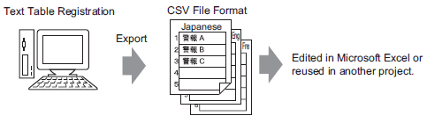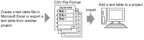 By creating the Text Table file (*.csv or *.txt) in Microsoft Excel in advance, you can use the file in the project by importing the file.