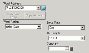 In the [Word Action] drop-down list, select [Write Data]. Set [Constant] to 1.