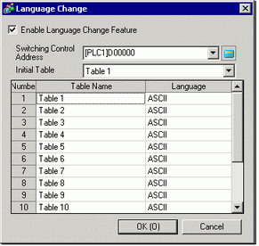 If you clear the [Enable Language Change Feature] check box, the Text Table data that has been specified is deleted.