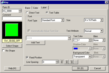 If you select [Add Text], the dialog box appears and you can add new text in the Text Table.
