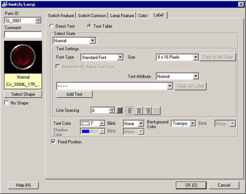 If the Lamp Feature is used, you can set the label corresponding to the lamp state.