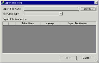 If the Text Table file to import is a CSV format file, select the appropriate code type from [Unicode], [ASCII (Windows)], [Japanese (Shift-JIS)], [Chinese Traditional (Big5)], [Chinese Simplified (GB2312)], [Korean], [Cyrillic (Windows)], or [Thai (Windows)].