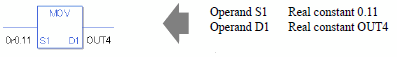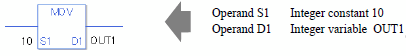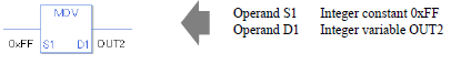 The MOV and MOVP instructions always pass power. When using the MOV and MOVP instructions, if the variables specified in operands S1 and D1 are not the same type, an error will occur. Designate the same variable type in all operands S1 and D1.